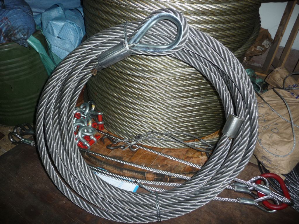 本公司產品有各式規格及材料之鋼索,各式大小鋼索加工批發,不銹鋼鋼索、鍍鋅鋼鋼索、合金壓頭、披覆PVC、尼龍PE、軟性鋼索……等可應用於大型拖車鋼索、起重機、吊車、絞車、船舶、鐵捲門鋼索、電梯用及一般機械鋼索。